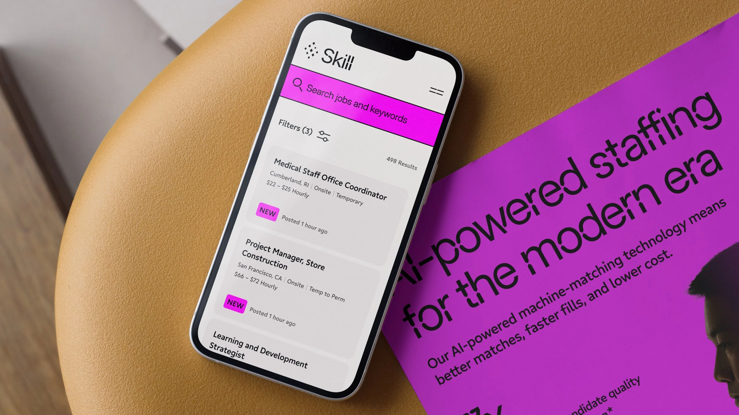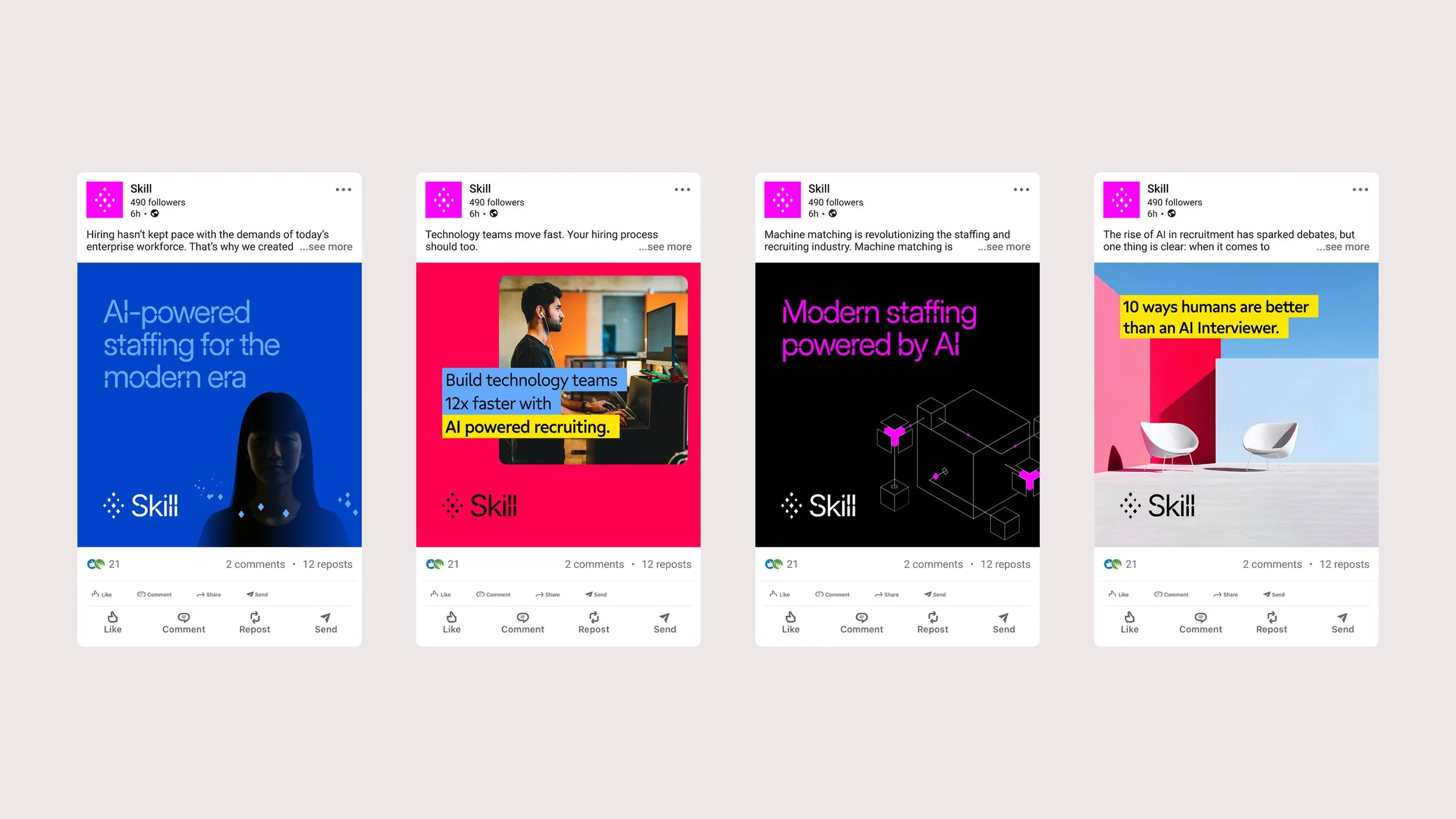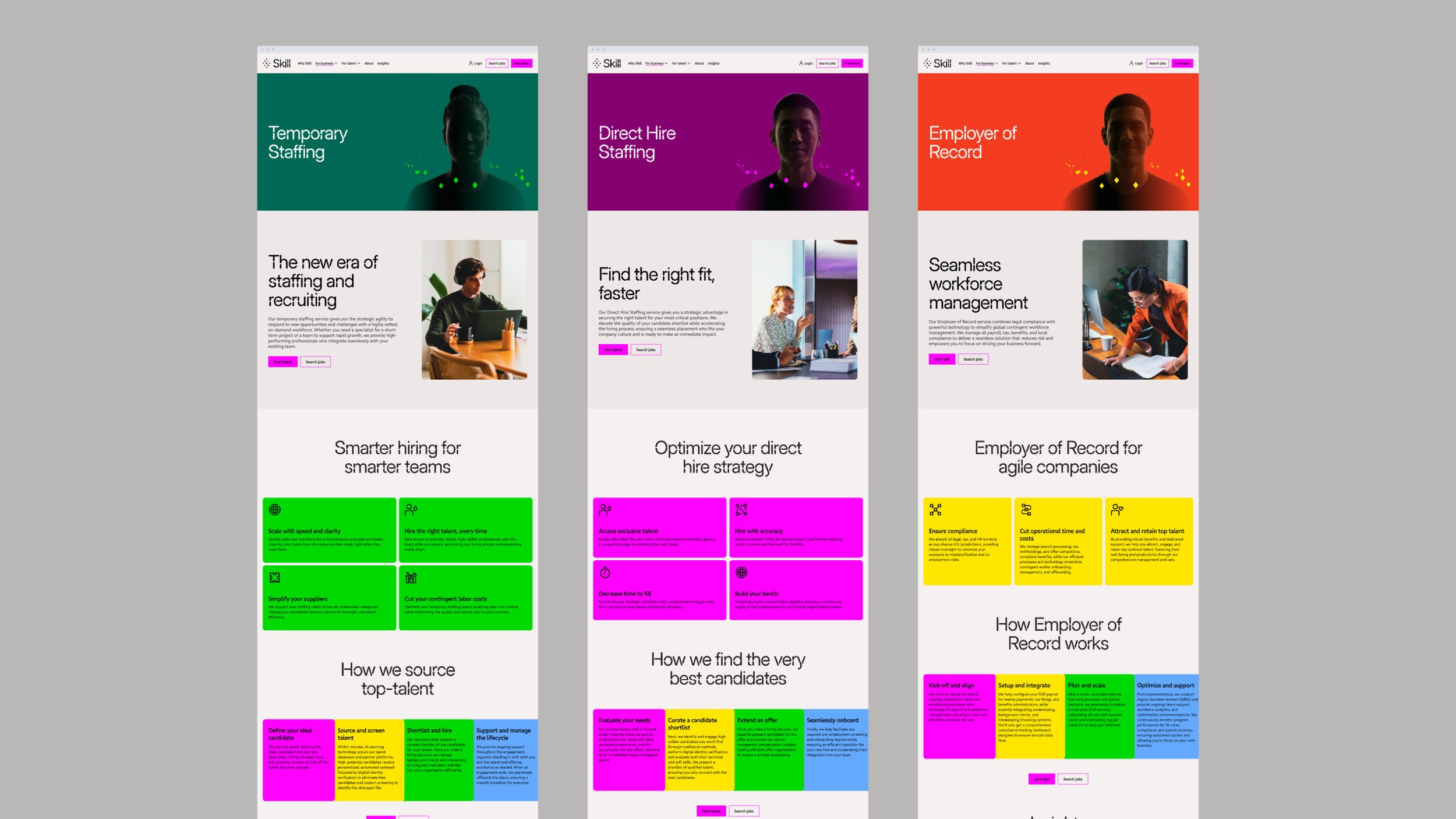 Skill is a next-generation recruiting company powered by proprietary, patented AI technology, launched by Aquent CEO John Chuang. Drawing on 40 years of global staffing leadership, Skill was built to disrupt a long-standing industry and define the future of recruiting. My role was to capture this vision and define a dynamic, high-performance brand that represents a total departure from traditional staffing models. To establish this new brand identity, I orchestrated a high-level collaboration with Pentagram NYC to define the brand’s strategic north star: the edge. This concept encapsulates the definitive advantage of Skill’s AI machine-matching engine—shifting the paradigm to a technology-first model centered on advanced intelligence, precision, and speed.